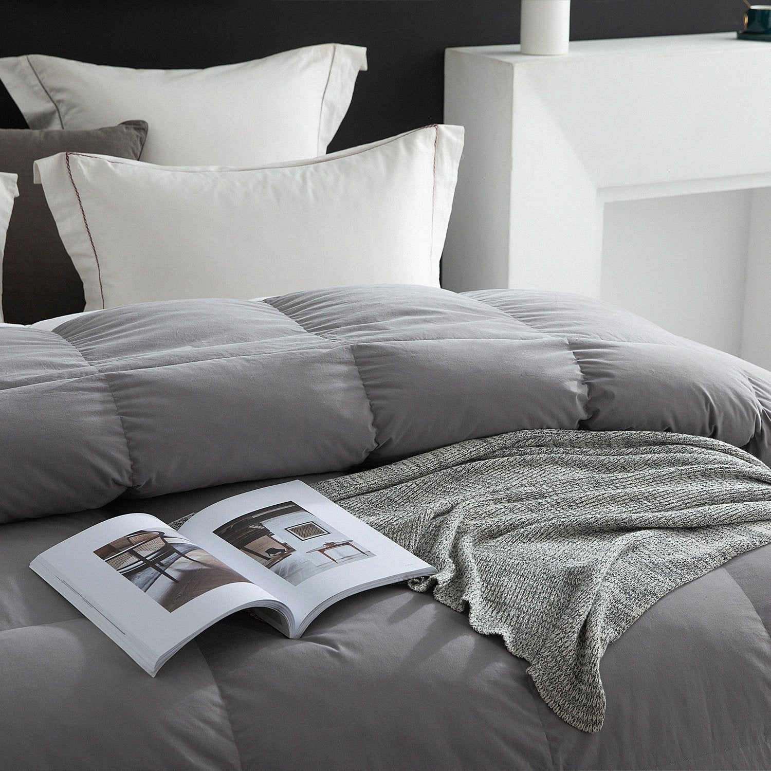 - PRODUCT DETAILS: Fusion white goose down comforter. King size: 106*90inch, 45oz fill weight, medium warmth for all season.