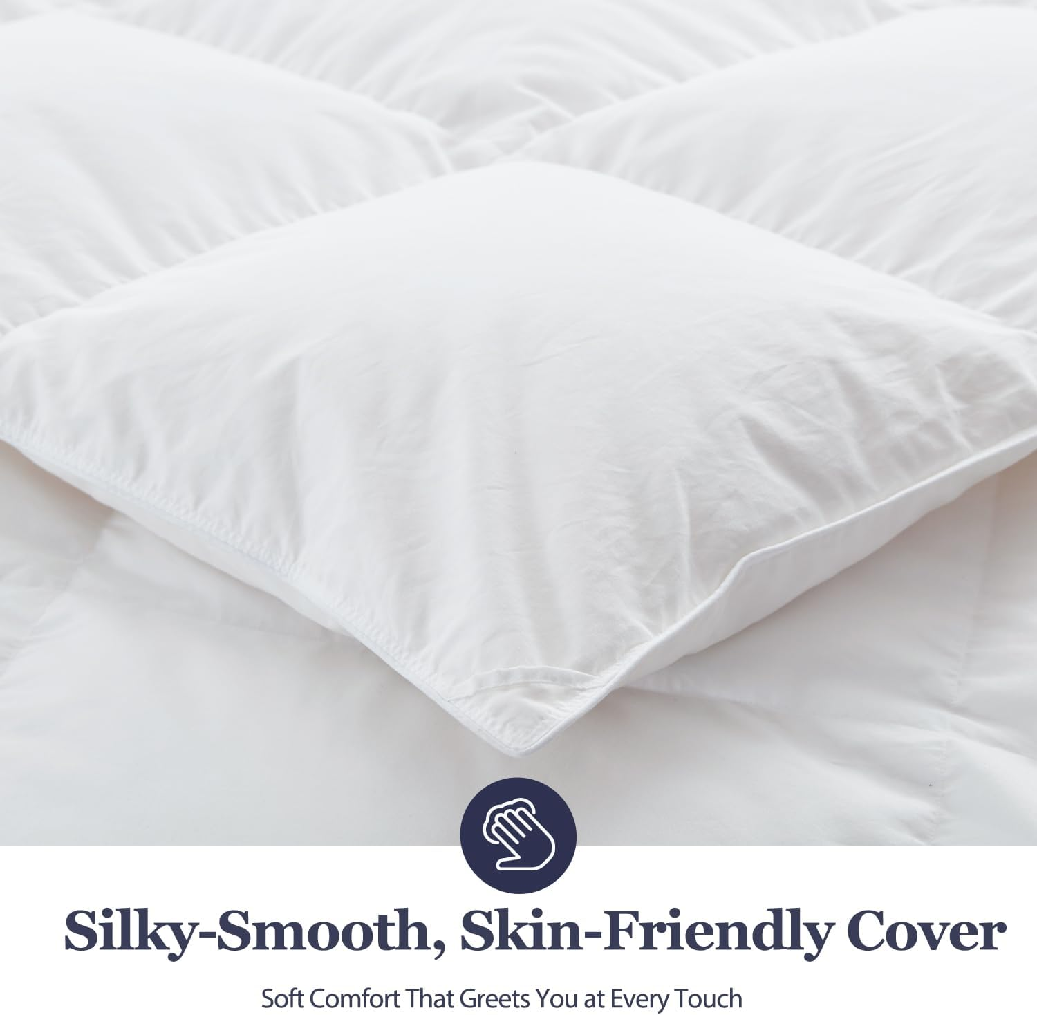 Globon Ultra-Soft Down Feather Comforter ,Luxurious Hotel Collection Fluffy Duvet Insert for All Season,Noiseless Shell,700 Filling Power,Medium Weight with Corner Tabs, White